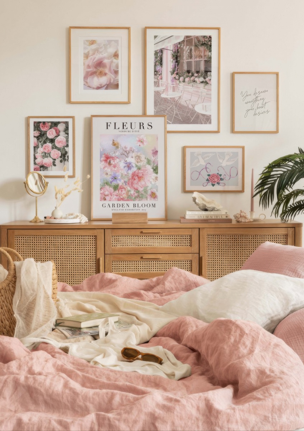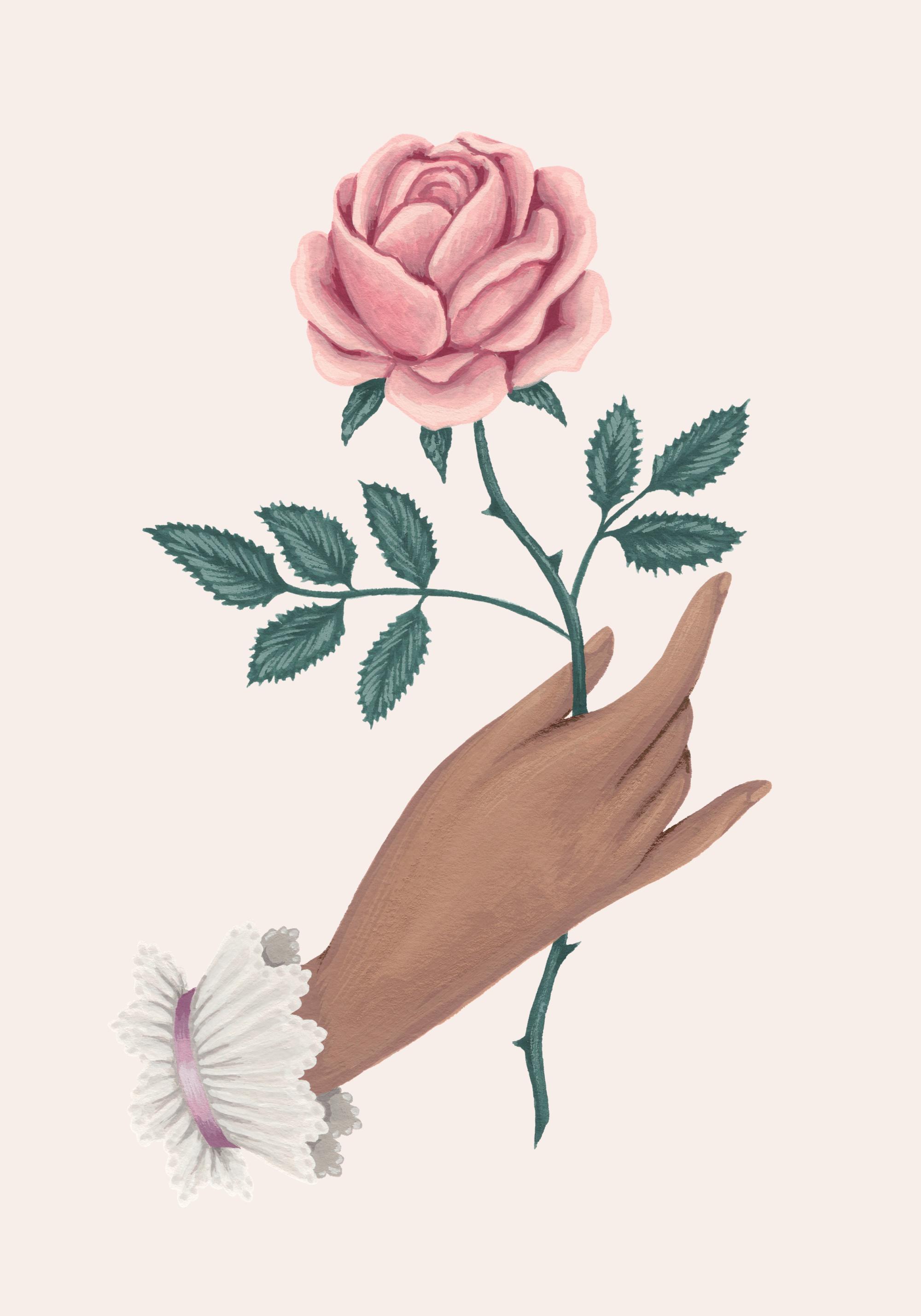 Romantisk kunsttryk af en rose i lyserød med grønne blade på en kvindes hånd. Et enkelt og romantisk print, der er perfekt til stuen eller soveværelset. Kombiner denne plakat med dit yndlingscitat!